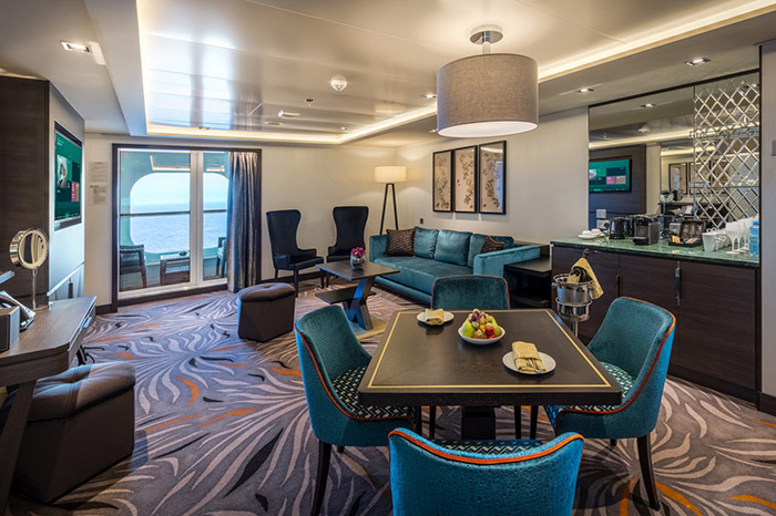 フロア面積:37㎡~ 最大定員:4名 デッキ : 13/15/16/17 クイーンサイズベッド+ダブルサイズソファベッド