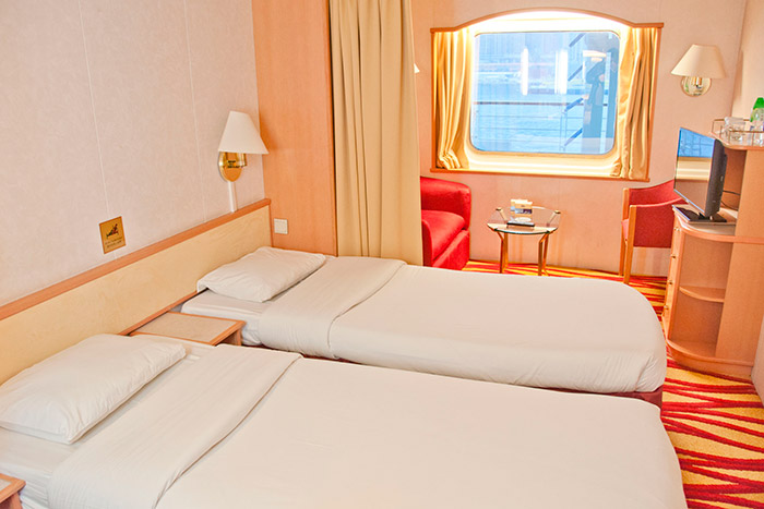 外部共有デッキに面しているキャビンとなり、キャビンの窓の外側を人が往来することがあります。 最大定員数:4名